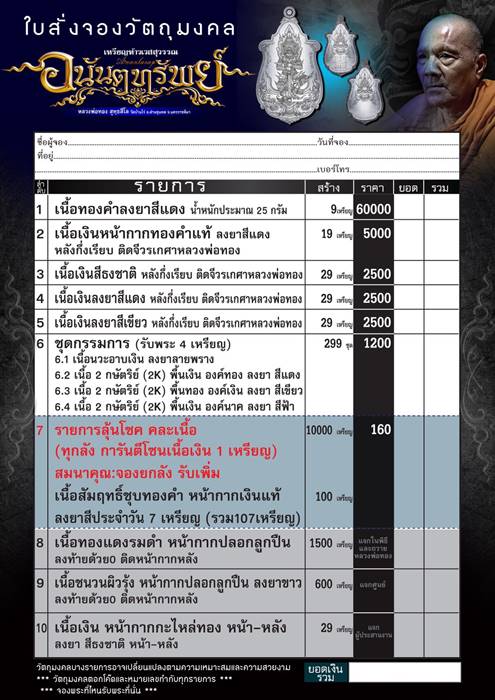รายการ 7.ลุ้นโชค คละเนื้อ ราคาจอง 160.-บาท มียอด= 150