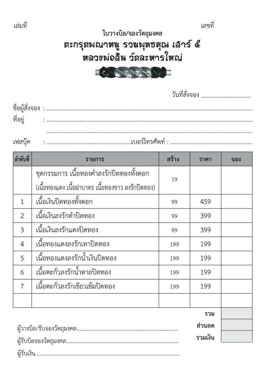รายการ 5.เนื้อทองแดงลงรักน้ำเงินปิดทอง ราคาจอง 199.-บาท มียอด= 10
