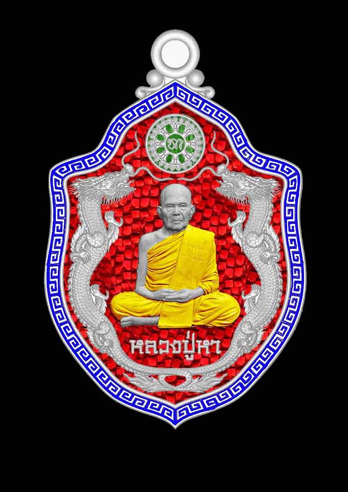เหรียญมังกรคู่เต็มองค์รุ่นแรกมหาเศรษฐีรวยสมปรารถนา หลวงปู่หา สุภโร วัดสักกะวัน กาฬสินธุ์ ลู้นโชค 150 บาท ยกลังประกันเนื้อเงินลงยา 3 เหรียญในลัง แถมเนื้อแบล็คโรเดียม 1 เหรียญ รวมรับพระ 101 เหรียญครับ