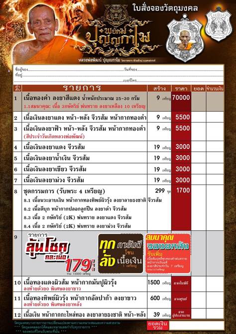 รายการ 8.ชุดกรรมการ (รับพระ 4 เหรียญ) ราคาจอง 1,700.-บาท มียอด= 5