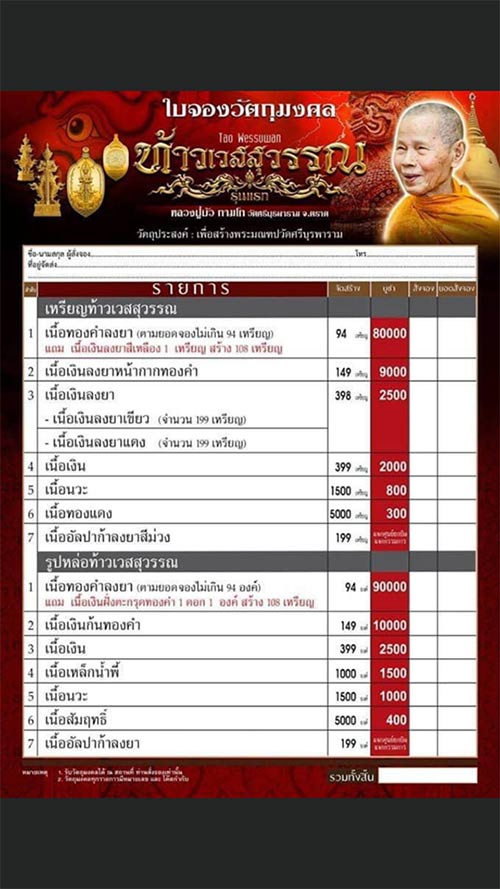 - เหรียญท้าวเวสสุวรรณ เนื้อทองแดง + รูปหล่อท้าวเวสสุวรรณ เนื้อสัมฤทธิ์ มี 5 คู่ ราคาคู่ละ 900 บาท