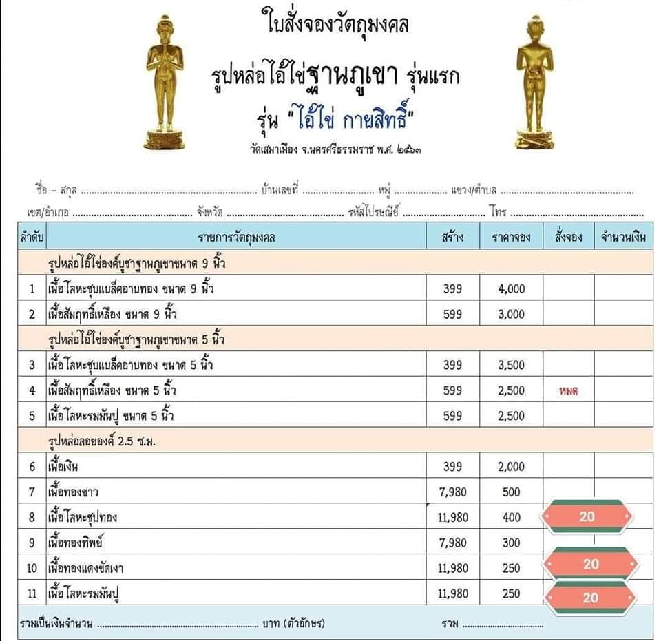 รายการที่8โลหะชุบทอง 20องค์ ราคา องค์ละ400บาท