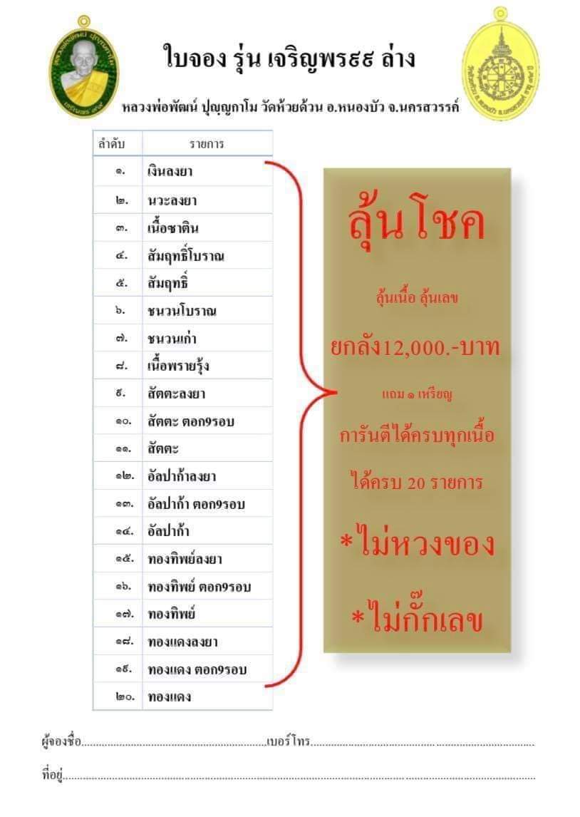 เปิดแบ่ง (รุ่นเจริญพร99ล่าง) หลวงพ่อพัฒน์ วัดห้วยด้วน