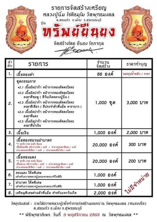รายการ 2.ชุดกรรมการ(รับพระ 5 เหรียญ) ราคาจอง 3,000.-บาท มียอด= สอบถาม