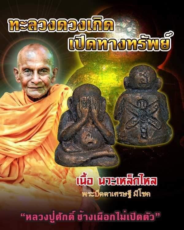 หลวงปู่ศักดิ์ท่านได้กล่าวว่า คนบางคน ดวงรุ่ง แต่ติดปัญหาต่างๆ ดวงไม่เกิดสักที เอาพระปิดตาองค์นี้ไป ทะลวงดวงเกิด เปิดทางทรัพย์ เปิดทางลาภ ปรารถนาสิ่งใดจะได้ดังจำนงค์
