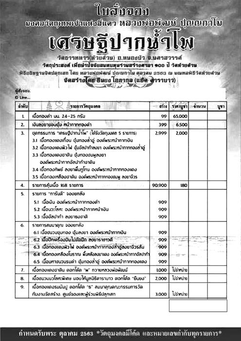 *** กำหนดรับพระเดือน ตุลาคม 2563 เป็นต้นไป