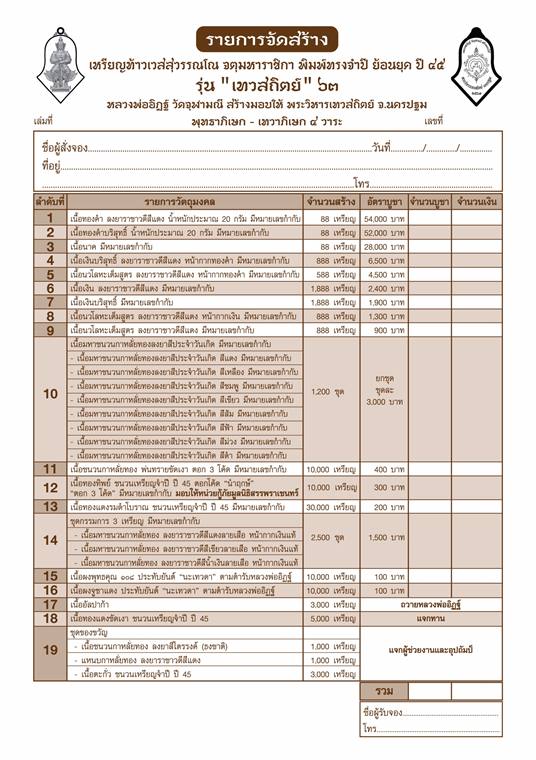 รายการ 15. เนื้อผงพุทธคุณ ๑๐๘ ประทับยันต์ นะเทวดา ราคาจอง 100.-บาท มียอด= 100