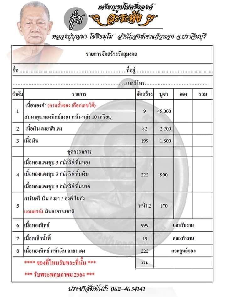 *** เปิดจอง/เหรียญ"อะระหัง" หลวงปู่บุญมาสำนักสงฆ์เขาเเก้วทอง จ.ปราจีนบุรี