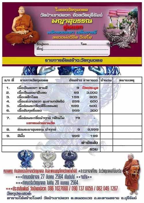 เปิดจอง พญาสุบรรณ รุ่นแรก หลวงพ่อวิชิต วัดป่าเขาปลวก บุรีรัมย์