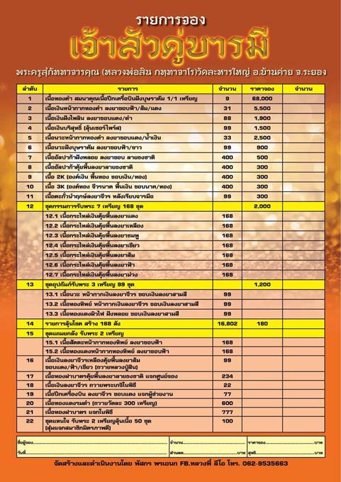 รายการ 12.ชุดกรรมการ (รับพระ 7 เหรียญ) ราคาจอง 2,000.-บาท มียอด= 5