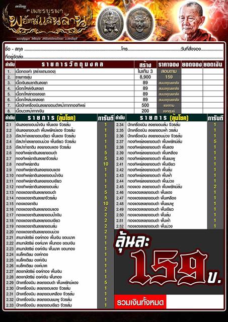 รายการ .ลุ้นโชค (สร้าง 89 ลัง) ราคาจอง 159.-บาท มียอด= 200