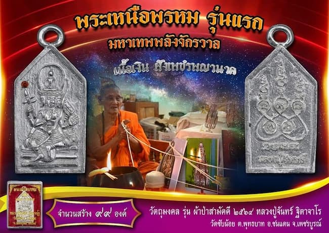 หลวงปู่ จึงนั่งออกแบบ พระเหนือพรหม มหาเฮง มหาเทพ ชนะสิบทิศ นั่งลงเวลาฤกษ์เที่ยงคืน หรือ นกกลางคืน ร้อง รับกันเป็นช่วงๆ เมื่อสิ้นเสียงนก ต้องลงให้เสร็จ พระเหนือพรหม ท่านบอกว่า เอาไปทำมาหากิน ไม่ได้เอาไว้อวดใครเขา รับรองร่ำรวย เป็นเศรษฐี แน่ๆ มีทรัพย์สิน ที่ทาง ถิ่นฐานบ้านช่องใหญ่โต
