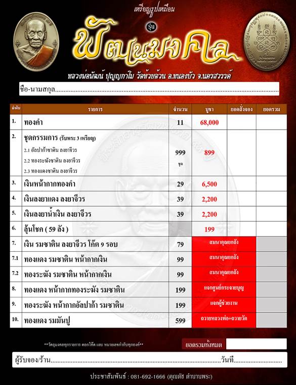 *** มีรายการเปิดจอง ดังนี้ครับ