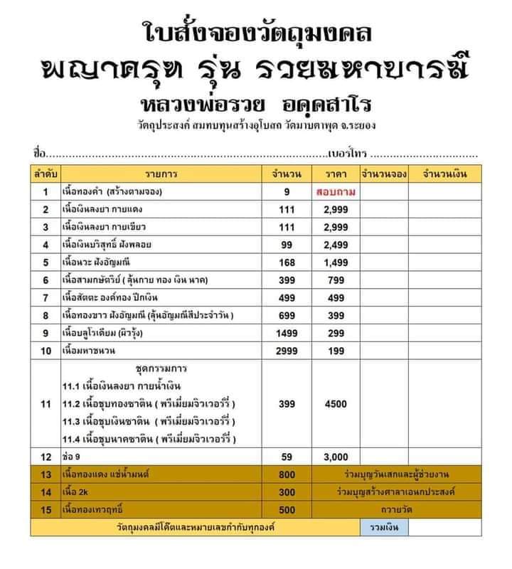 เปิดจอง พญาครุฑ รุ่นแรก หลวงพ่อรวย วัดมาบตาพุด ระยอง ราคาจอง