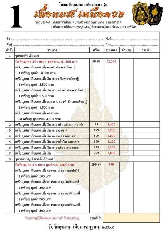 รายการ 1.ชุดทองคำ เลื่อนยศ ราคาจอง 55,000.-บาท มียอด= สอบถาม