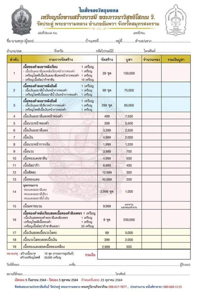 ราคาจองตามใบรายการ มีรายการตามนี้ครับ