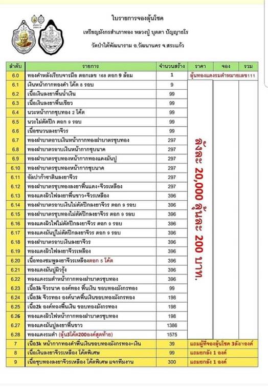 รายการ 2.3.เนื้อเงินลงยาพื้นแดง จีวรเหลือง ราคาจอง 2,000.-บาท มียอด= 5