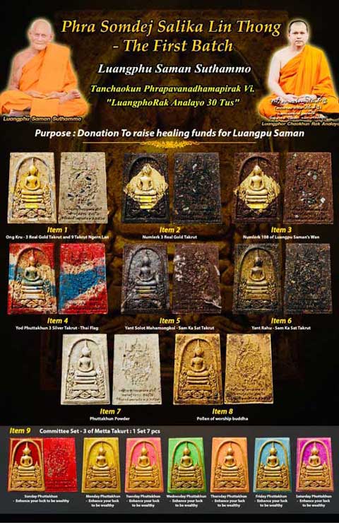 รุ่นนี้ จัดสร้างขึ้นเพื่อฉลองอายุครบ ๙๐ ปี ของหลวงปู่สมาน สุธมฺโม ที่พักสงฆ์เขายางหัก จ.ราชบุรี โดยด้านหน้าเป็น องค์พระสมเด็จ ประทับอยู่เหนือรัตนบัลลังก์ มีพญาสาลิกาลิ้นทองคู่ ขนาบซ้ายขวา เป็นสุดยอดวิชา สายเมตตามหานิยม มหาเสน่ห์ เรียกทรัพย์ เป็นเลิศนักแล วิชานี้ หลวงปู่สมาน เรียนมาจากตำราโบราณของ อาจารย์รวม หนังแห้ง อดีตฆราวาสอาจารยสักยันต์ชื่อดัง