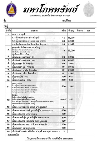 12.ลุ้นเนื้อสร้าง จำนวน 190ลุ้น ราคาลุ้นละ 270 บาท ยกลัง ชุดแถมยกลังครบ