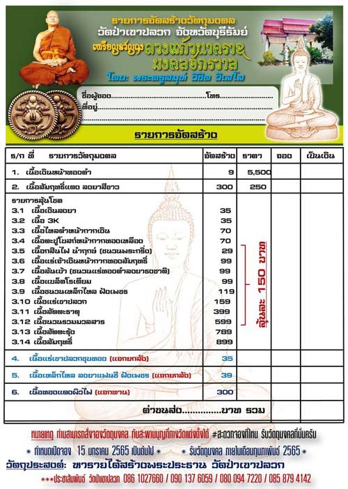 งานบุญวัดป่าเขาปลวก จังหวัดบุรีรัมย์ วัตถุประสงค์สร้างพระประธานในโบสถ์หน้าตัก 89 นิ้วและสร้างโบสถ์วัดป่าปลวก