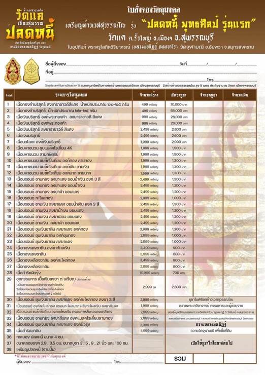 รายการ 16.เนื้อบรอนซ์ กะไหล่ทอง ราคาจอง 1,000.-บาท มียอด= 10