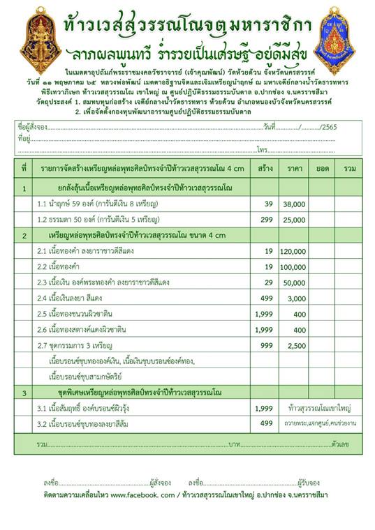 รายการ 1.1.ยกลังลุ้นเนื้อ นำฤกษ์ (รับพระ 59 เหรียญ) การันตี เนื้อเงิน 8 เหรียญ ราคาจอง 38,000.-บาท มียอด = สอบถาม