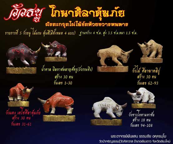 " เป็นหนึ่งในเครื่องรางที่มีชื่อเสียงมาแต่โบราณ มีคุณทางด้านปกปัดแก้กัน ปกคือปกป้องอาณาเขตเฝ้าบ้านเฝ้าเรือน ปัดคือปัดเป่าสิ่งไม่ดีทั้งหลาย แก้คือแก้ของแก้คุณไสย์ กันคือกันสิ่งไม่ดีเสนียดจัญไรที่ผู้ไม่ประสงค์ดีส่งมา ตลอดถึงสะท้อนกลับไปยังผู้กระทำ วัวรุ่นแรกนี้หล่อมาจากมวลสารของวัด กอปรกับในแต่ละเนื้อมีมวลสารที่มีฤทธิ์จนเรียกว่าเป็นของทนสิทธิ์ในตัว มีคุณทั้งคุ้มภัยและเมตตา เรียกได้ว่าเมื่อวัวถูกสร้างตามตำราวัดแล้วได้มวลสารชั้นเลิศมาทำ จึงมีพุทธคุณเป็นทวีคูเหลือจะพรรณนา ตามแต่เจ้าของจะนำไปใช้เถิด " |
