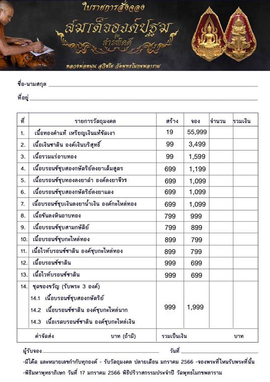 รายการ 14.ชุดของขวัญ (รับพระ 3 องค์) ราคาจอง 1,999.-บาท มียอด= 5
