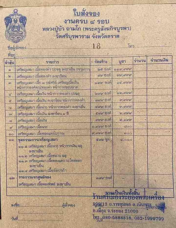 * ออกบิลในนามศูนย์จอง ศรีเมืองระยอง พระเครื่อง ให้ครับ