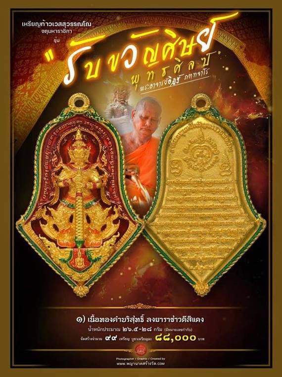 รายการ 2. เนื้อทองคำบริสุทธิ์ ลงยาราชาวดีสีประจำวันเกิดหลวงพ่ออิฏฐ์ ราคาจอง 88,000.-บาท มียอด= สอบถาม