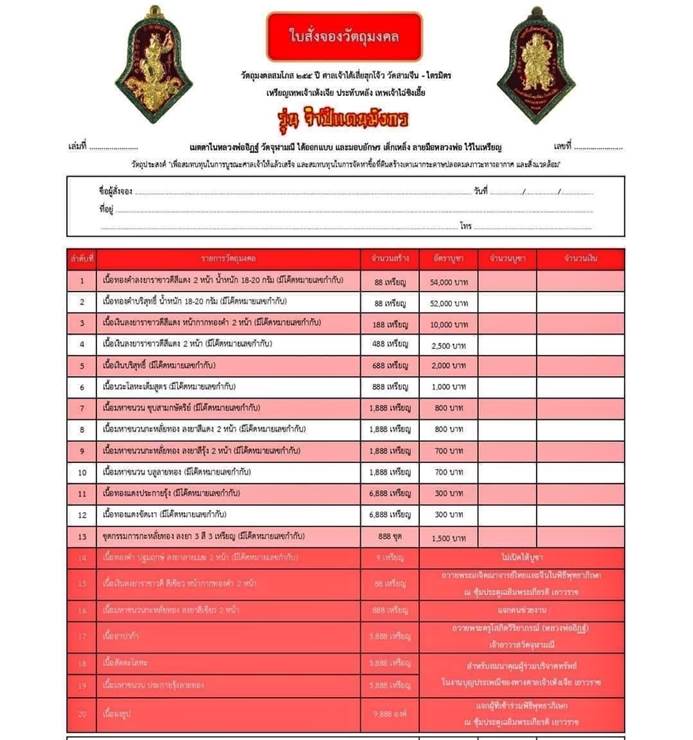 รายการ 13. ชุดกรรมการ (รับพระ 3 เหรียญ) ราคาจอง 1,500.-บาท มียอด= 5