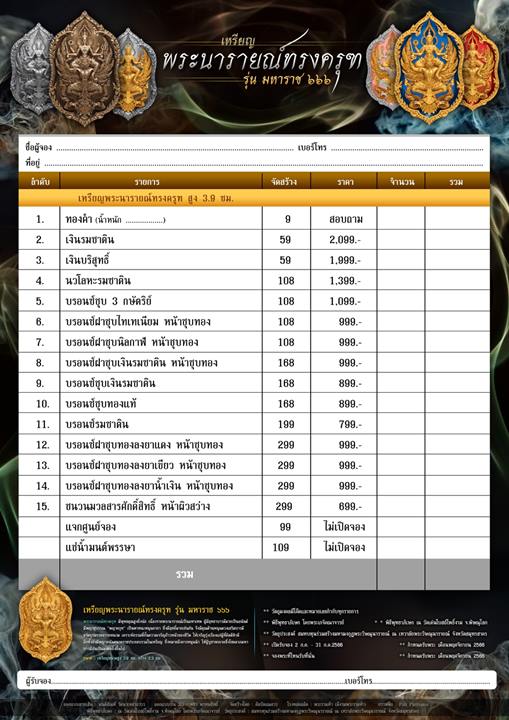 รายการ 12.เนื้อบรอนซ์ฝาชุบทองลงยาแดง หน้าชุบทอง ราคาจอง 999.-บาท มียอด= 5