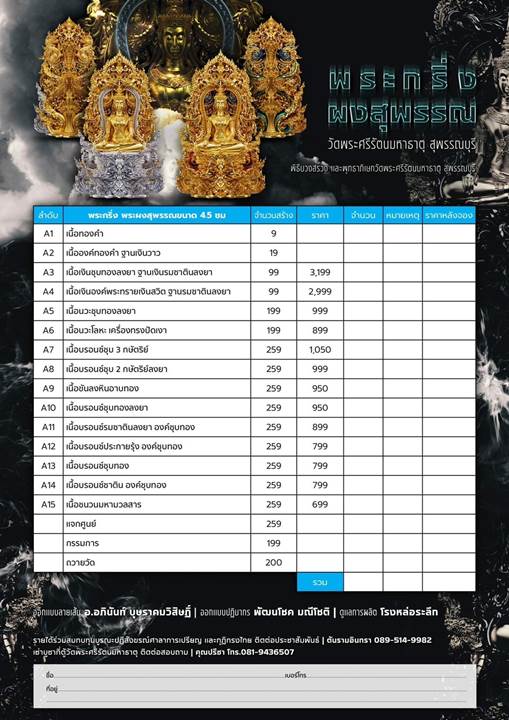 รายการ A4.เนื้อเงินองค์พระทรายเงินสวิต ฐานรมซาตินลงยา ราคาจอง 2,999.-บาท มียอด = 2