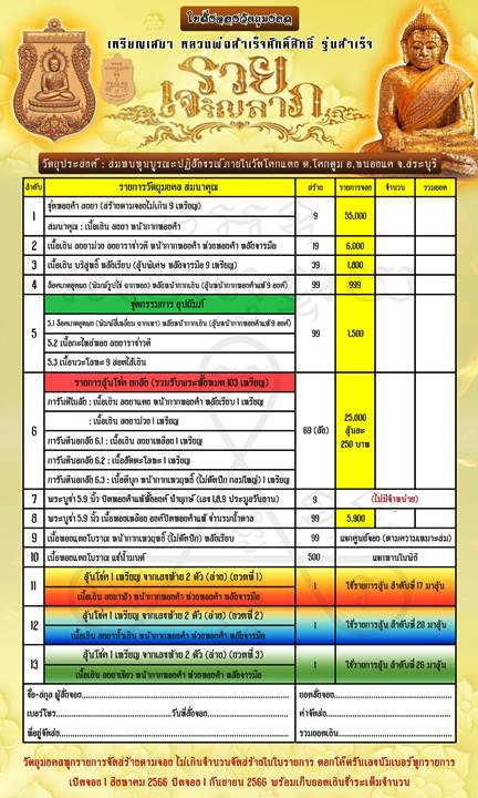 รายการ 6.ลุ้นโชค ราคาจอง 250.-บาท มียอด= 100