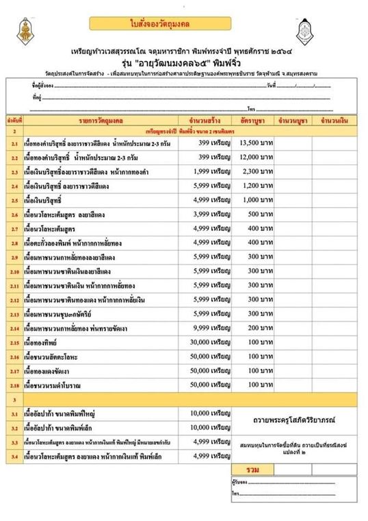 รายการ 2.16. เนื้อชนวนสัตตะโลหะ ราคาจอง 100.-บาท มียอด= 100