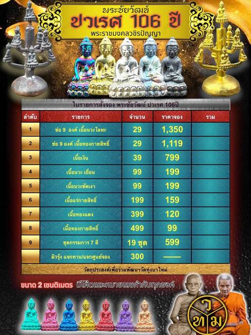 รายการ 2.ช่อ 9 องค์ เนื้อทองกายสิทธิ์ ราคาจอง 1,119.-บาท มียอด = สอบถาม