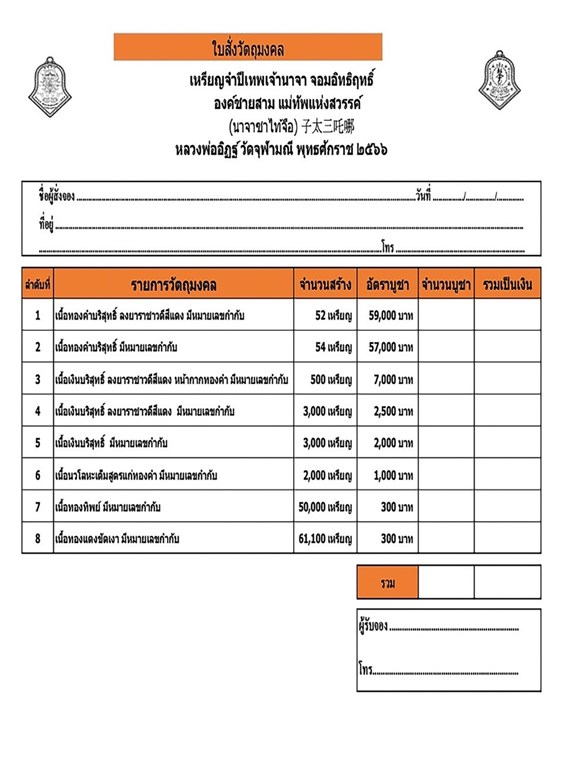 รายการ 6. เนื้อนวโลหะเต็มสูตรแก่ทองคำ ราคาจอง 1,000.-บาท มียอด= 10