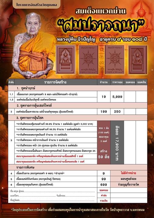 หัวข้อกระทู้ : เปิดจอง// พระสมเด็จแหวกม่าน สมปรารถนา หลวงปู่คีบ ธีรปญฺโญ อายุครบ 9 รอบ 108 ปี วัดป่าสุทธาวาส