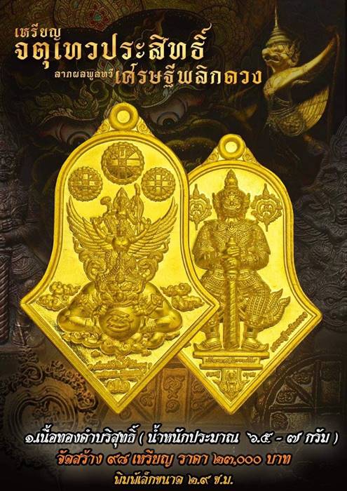 *** เปิดจอง// เหรียญจตุเทวประสิทธิ์ พิมพ์ทรงจำปี รุ่น "ลาภผลพูนทวี เศรษฐีพลิกดวง 71"