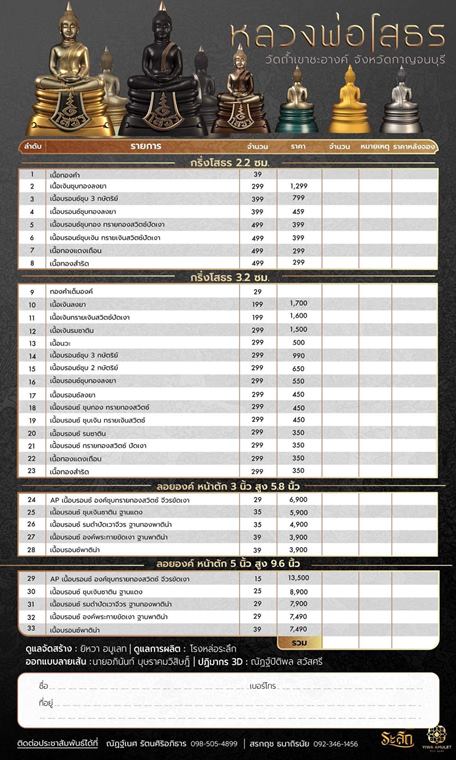 รายการ 2.10 เนื้อบรอนซ์ องค์ชุบทอง แผ่นหลังชุบรุ้ง ราคาจอง 899.-บาท มียอด= 2