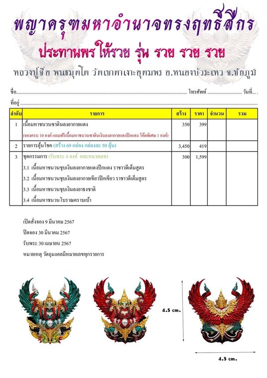 *** เปิดจอง// พญาครุฑมหาอำนาจทรงฤทธิ์สี่กร ประทานพรให้รวย รุ่น รวย รวย รวย หลวงปู่จื่อ พันธมุตโต วัดเขาตาเงาะอุดมพร จ.ชัยภูมิ