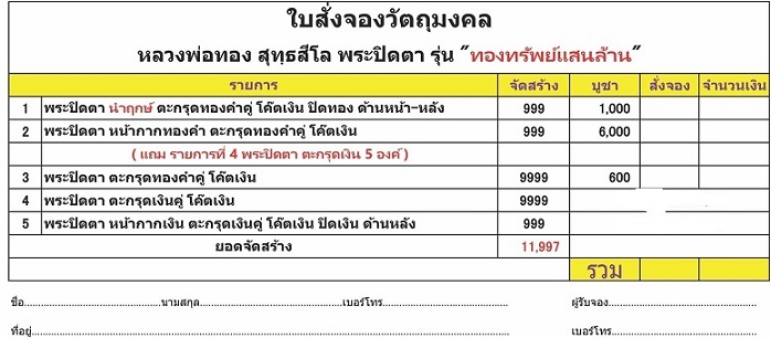 เปิดจอง พระปิดตา ทองทรัพย์แสนล้าน หลวงพ่อทอง วัดบ้านไร่ จากคูณพันล้าน หลวงพ่อคูณ สู่ทองทรัพย์แสนล้าน หลวงพ่อทอง อันมีเอกลักษณ์รูปแบบที่สวยงามมาก กำหนดปลุกเสก ก่อนสงกรานต์เมษายน 2567 แรงตาม คูณพันล้าน แน่นอน ครับ สวย สวย ลงชื่อจองได้เลยครับ (บช. กสิกร 0952149646 เกรียงไกร ) ได้รับพระแน่นอนครับ. |
