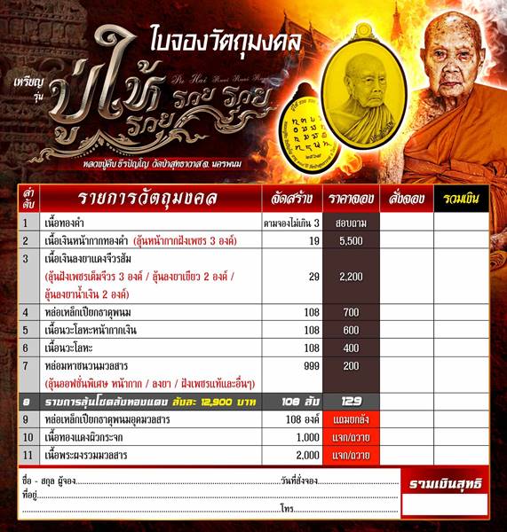รายการ 3. เนื้อเงินลงยาแดงจีวรส้ม (ลุ้นพิเศษ) ราคาจอง 2,200.-บาท มียอด = 2