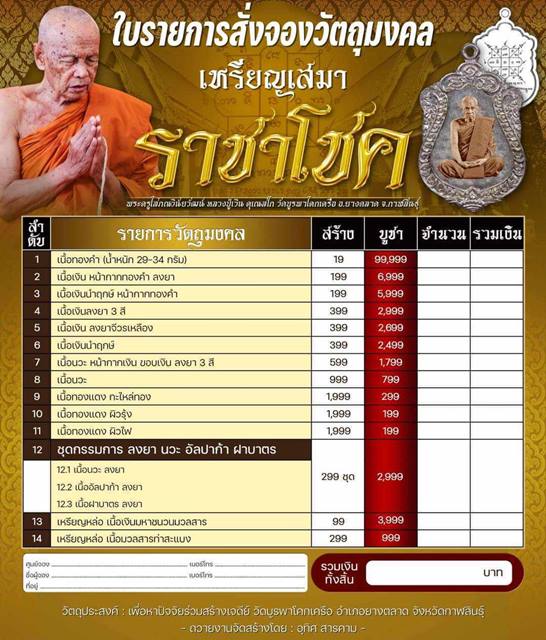 *** เปิดจอง// วัตถุมงคล รุ่น ราชาโชค หลวงปู่เวิน คุเณสโก วัดบูรพาโคกเครือ จ.กาฬสินธุ์