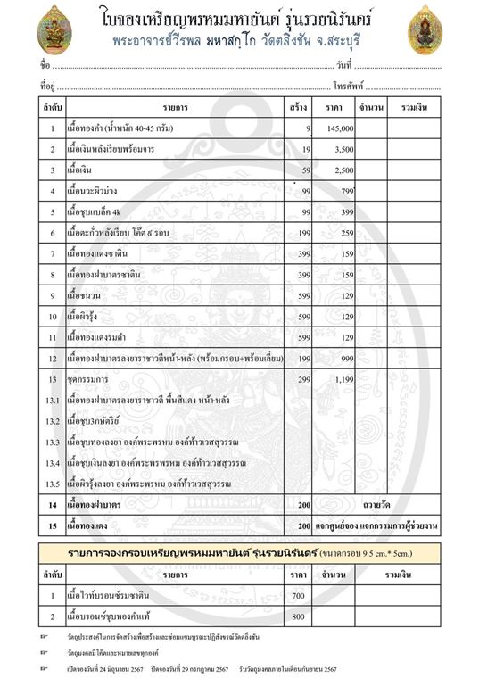 รายการ 13. เนื้อชนวนมวลสารศักดิ์สิทธิ์ ราคาจอง 799.-บาท มียอด= 10