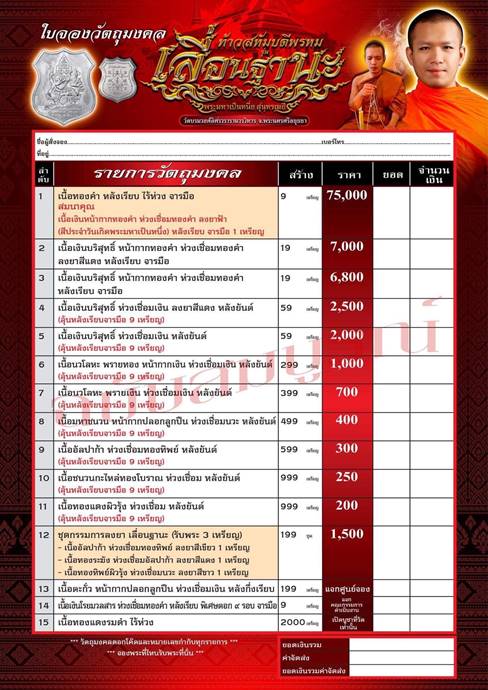 รายการ 6.เนื้อนวโลหะ พรายทอง หน้ากากเงิน ห่วงเชื่อมเงิน หลังยันต์ (ลุ้นพิเศษ) ราคาจอง 1,000.-บาท มียอด = 5