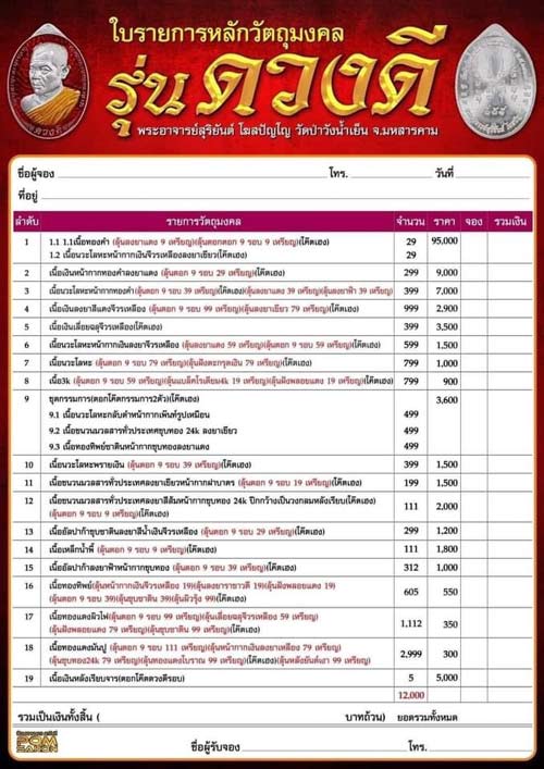 รายการ 4 เนื้อเงินลงยาแดงจีวรเหลือง ราคา 3500.-บาท มียอด = 2