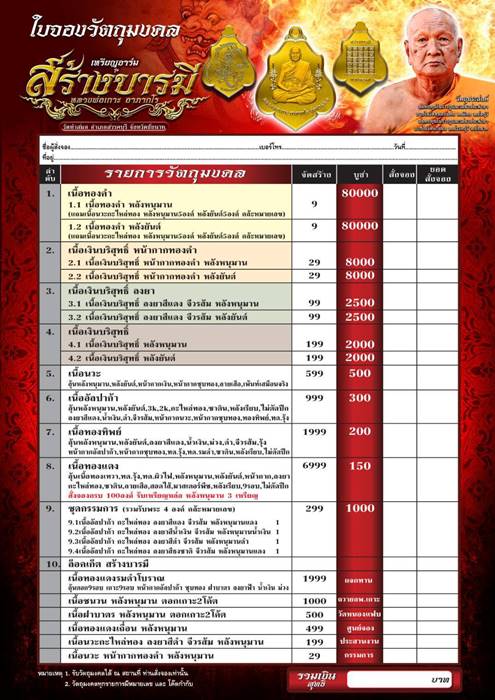 รายการ 2.2 เนื้อเงินบริสุทธิ์ หน้ากากทองคำ หลังยันต์ ราคาจอง 8,000.-บาท มียอด= สอบถาม
