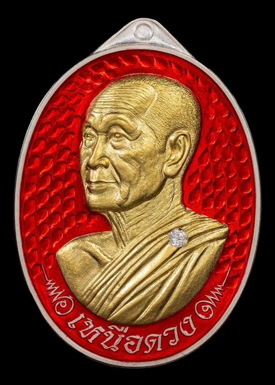 รายการ 4.เนื้อเงิน ฝังเพชร ลงยาพื้นแดง หลังยันต์แดง ลงยาจีวร ราคาจอง 2,400.-บาท มียอด= 2