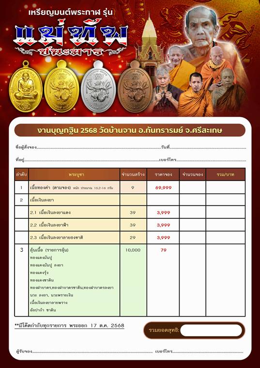 *** เปิดจอง// เหรียญมนต์พระกาฬ รุ่น แม่ทัพ ชนะศึก งานบุญกฐิน 2568 วัดบ้านจาน อ.กันทรารมย์ จ.ศรีสะเกษ